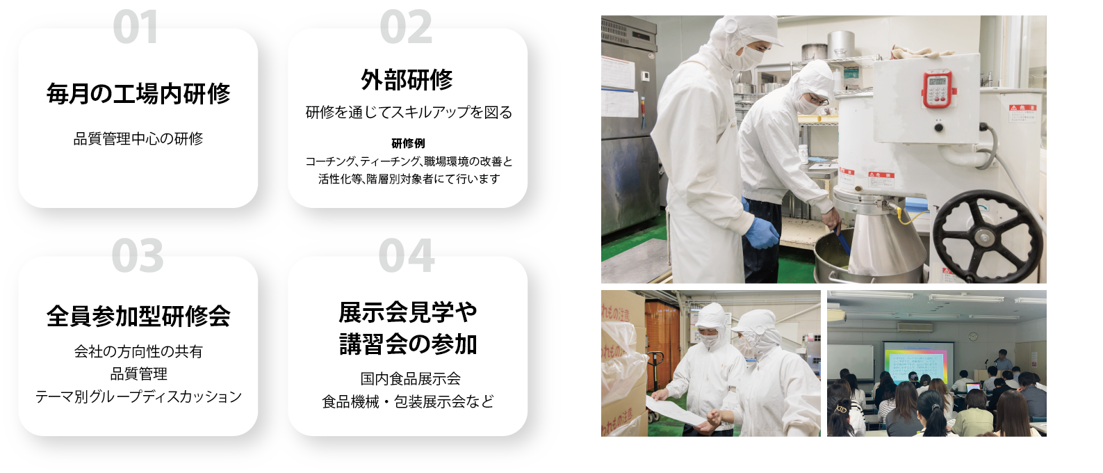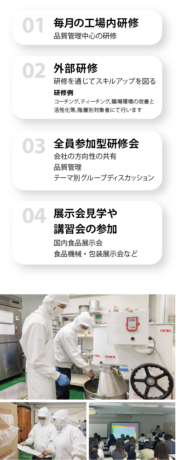 折角弊社を選んで頂いたのですから、初めて菓子製造される方にも、分かりやすく衛生管理の基本や製菓知識・技術をお教えします。