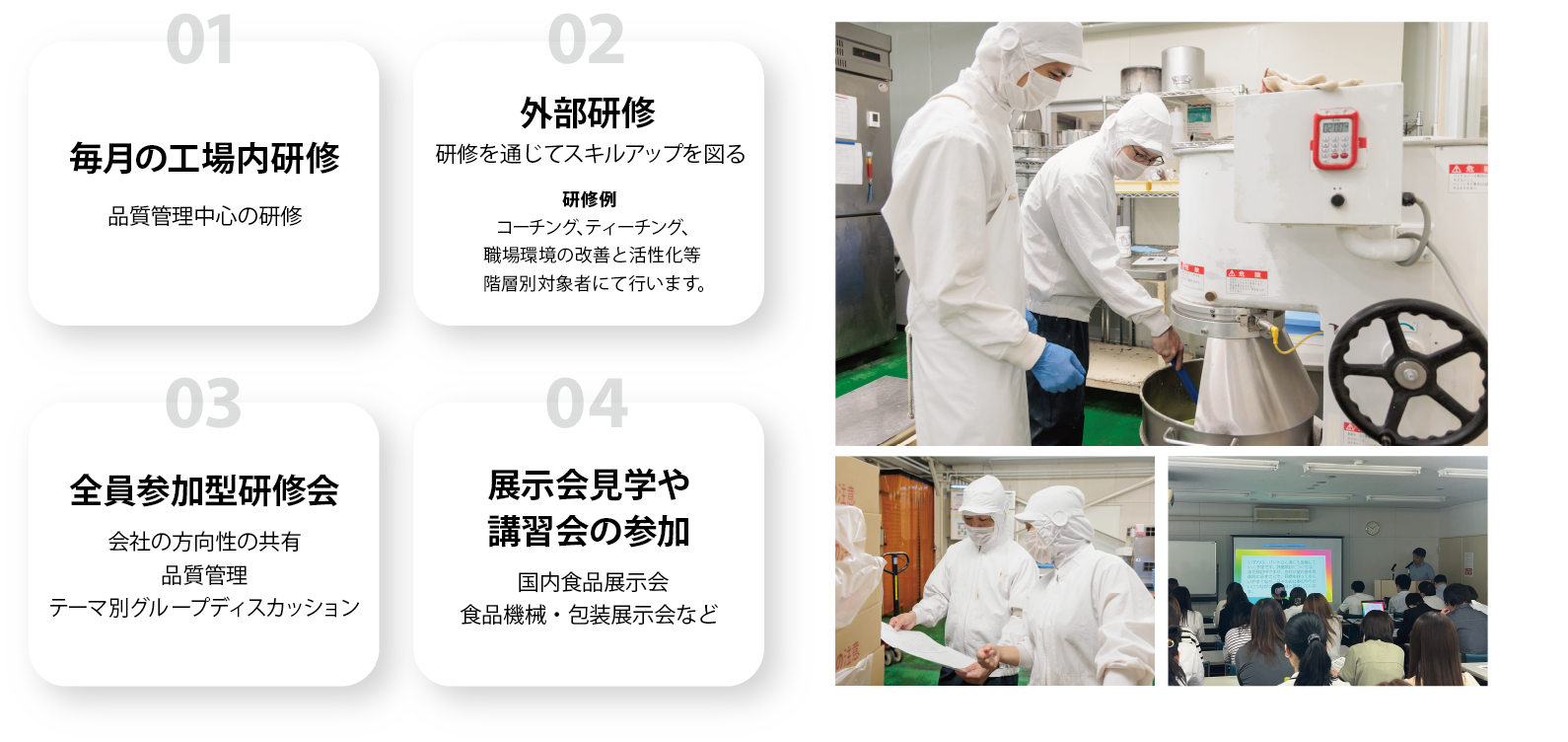 また、個々のスキルアップがやりがいに繋がり、ひいてはお客様の喜びにも繋がると考え、スキルアップ研修に取り組んでいます。